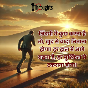 ज़िंदगी में कुछ करना है तो, खुद से वादा निभाना होगा। हर हाल में आगे बढ़ना है, हर मुश्किल से टकराना होगा।