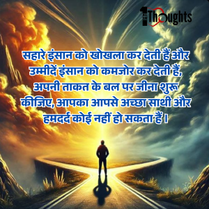 सहारे इंसान को खोखला कर देती हैं और उम्मीदें इंसान को कमजोर कर देती हैं, अपनी ताकत के बल पर जीना शुरू कीजिए, आपका आपसे अच्छा साथी और हमदर्द कोई नहीं हो सकता हैं ।